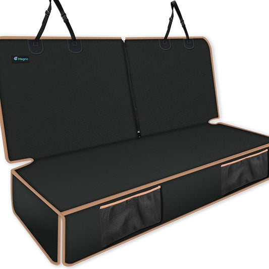Waterproof Dog Car Seat Cover for Back Seat - Durable, Scratch Proof Pet Hammock with Nonslip Design & Storage Pockets, Fits Cars, SUVs, Trucks - L, Black