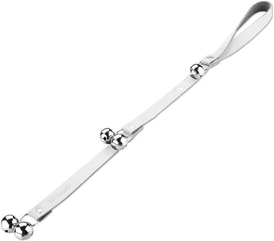 Leather Dog Doorbells for Door Knob/Potty Training/Go Outside, Length Adjustment Copper Dog Bell, Housetraining Hanging Bell, White Leather Silver Bells