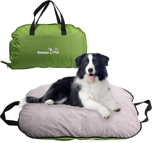 Portable Waterproof Dog Mat for Camping, Patio & Travel - Foldable Outdoor Dog Bed with Teflon Shell & Removable Plush Pad - Easy Clean, Durable - L (Sage Green)