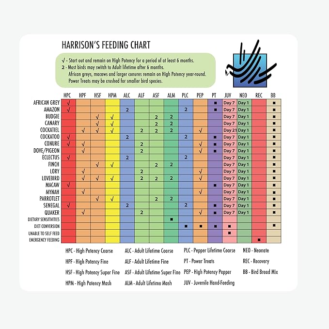 - USES: A spicy alternative to Adult Lifetime Coarse Formula, May be added to High Potency to assist in diet conversion, May be offered to birds with clinical signs of papillomatosis, May be used as a foraging treat.