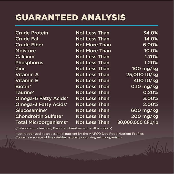 - SUPPORTS HEALTHY COAT & DIGESTIVE HEALTH: Guaranteed levels of omega fatty acids from ingredients such as flaxseed and salmon oil support healthy skin and coat, glucosamine for strong joints, probiotics for digestive health and taurine for a healthy heart.