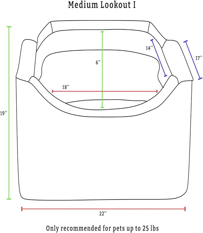 - Luxurious Dog Car Seat: The Lookout I is a comfortable and secure car seat for small and medium dogs up to 25 pounds. It's the perfect booster seat for allowing little pups to see out of the window
