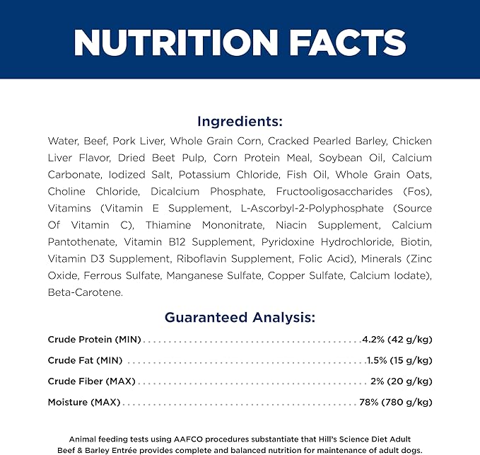 Hill's Science Diet Adult 1-6, Adult 1-6 Premium Nutrition, Wet Dog Food, Beef & Barley Loaf, 13 oz Can, Case of 12