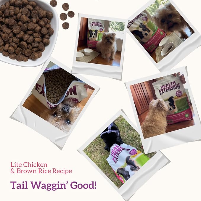 Health Extension Lite Chicken & Brown Rice Dry Dog Food, Low Fat Formula Supports Healthy Weight, with Probiotics & Superfoods for Digestion & Coat Health (4lb)