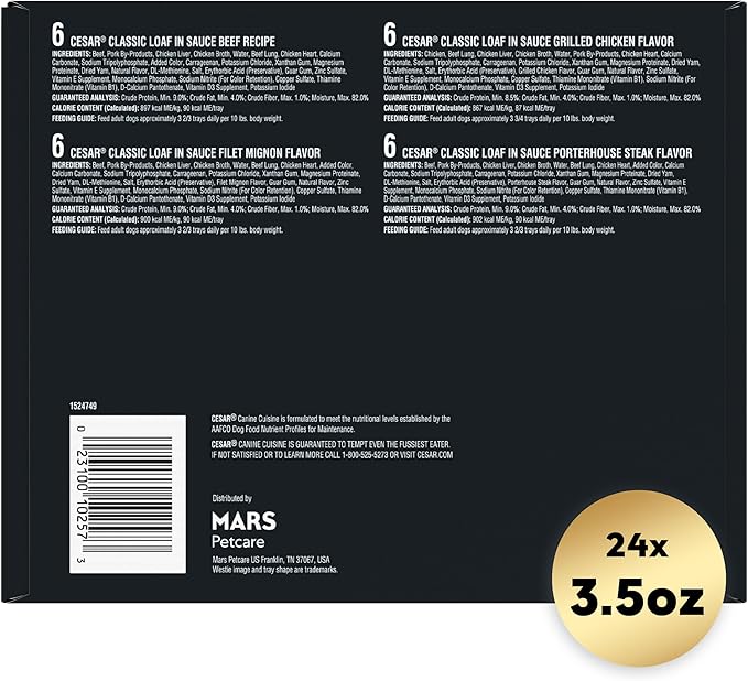 - Peel Away Seals: Cesar Classic Loafs gourmet soft dog food is served in convenient trays with easy, peel away seals