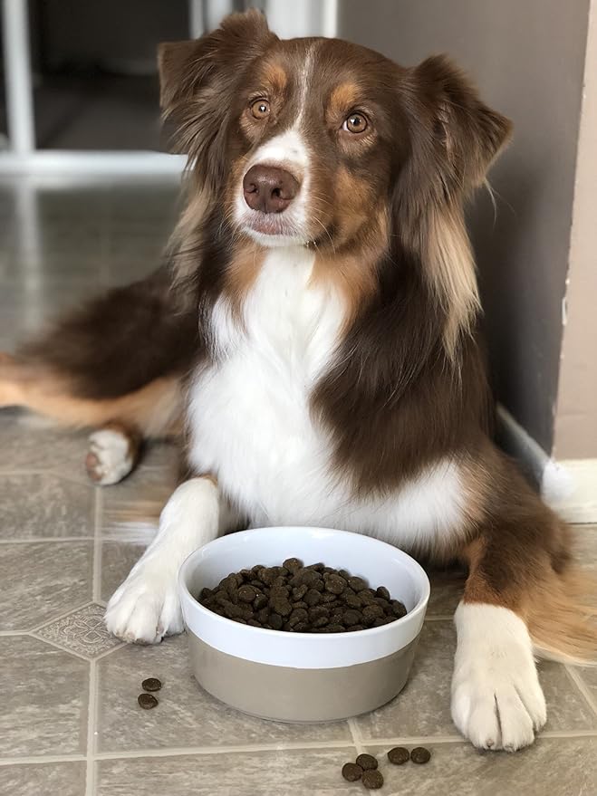 Waggo Dipper Ceramic Dog Bowl for Small and Large Breeds - Heavyweight and Durable Pet Food and Water Dish Crock, Dishwasher Safe, Modern (Vintage Grey, Large)
