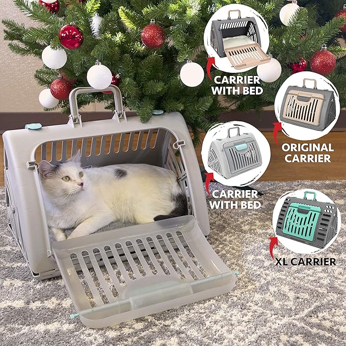 SportPet Designs Foldable Travel Cat Carrier - Front Door Plastic Collapsible Carrier Collection, Waterproof Bed