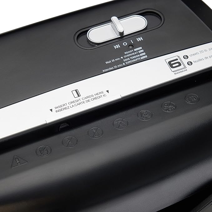 Amazon Basics 6 Sheet Cross Cut Paper and Credit Card Home Office Shredder with 3.8 Gallon Bin, Black
