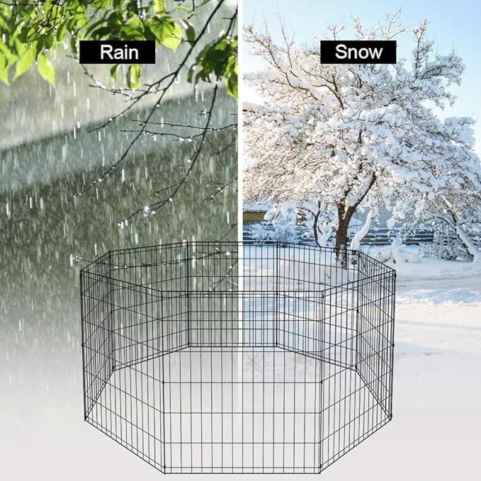 - ✔【 ANTI-RUST METAL EXERCISE PET PEN】: Epoxy coating finish extends the life of the pet playpen and provides resistance against rust, corrosion, and fading, even in the most extreme climates. The dog fence is easy to clean and doesn't take up a lot of time. Pet fence with door pet exercise pens pet fence.