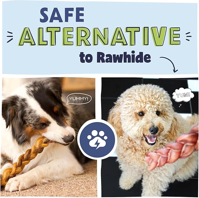 - Tough Highly-Digestible Rawhide Alternative: Our braided bully sticks are made of three bully sticks woven together for a durable chew that reduces boredom and stress while keeping your dog happy (and away from your shoes!)