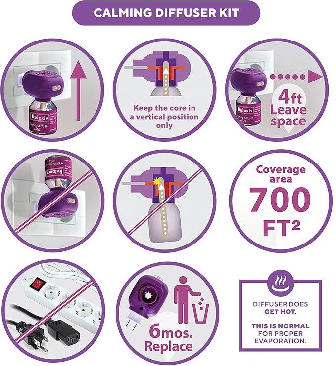- ✅ FIRST EFFECT: For best results, keep the diffuser kit connected for at least 7 days at all times. Plug into a standard electrical outlet in your cat's favorite room. For maximum calming results, keep the diffuser plugged in 24/7 and replace the refill bottle about every 30 days.