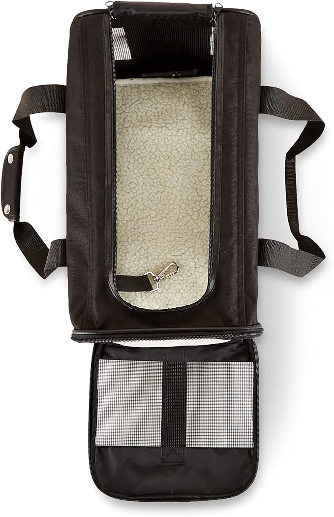 - Soft sided carrier for keeping a pet comfortably contained when traveling or heading to the vet