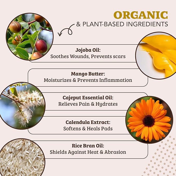 - POWERFUL, LICK-SAFE WAX-BASED BARRIER: Formulated with premium, all-natural ingredients like Carnauba Wax, Candelilla Wax, Organic Shea Butter, and Calendula Extract, our balm creates a long-lasting shield against snow, ice, and salt. Ideal for daily winter use, it deeply moisturizes and conditions to prevent cracking, dryness, and irritation. Safe if licked by curious pets, this paw balm keeps paws resilient and protected through all winter adventures.