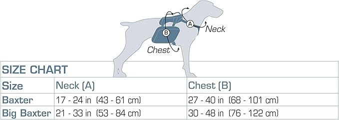 - Two saddle bags provide extra space to store your dog's travel essentials; Baxter size fits 3.75L, and Big Baxter fits 7.5L