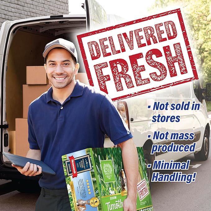 - Minimally Handled & Delivered Fresh - Make it easy to provide exactly what your little friend needs with regular shipments of fresh from the farm hay to wear down growing teeth and protect digestive health. Each delivery of premium Timothy hay for rabbits, guinea pigs, and chinchillas includes a great mix of protein, fiber and fat to keep them healthy. Your small pet may not thank you with words, but happy oinks and binkies will make you feel like the pet owner of the year.