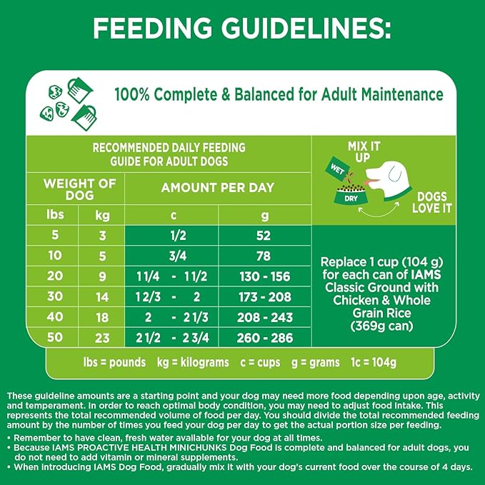 - Complete and Balanced for Adult Dogs: 100% complete and balanced adult high protein dog food, 0% fillers, IAMS Proactive Health Minichunks supports vibrant whole-body health with essential nutrients, and is enriched with antioxidants to support a strong immune system