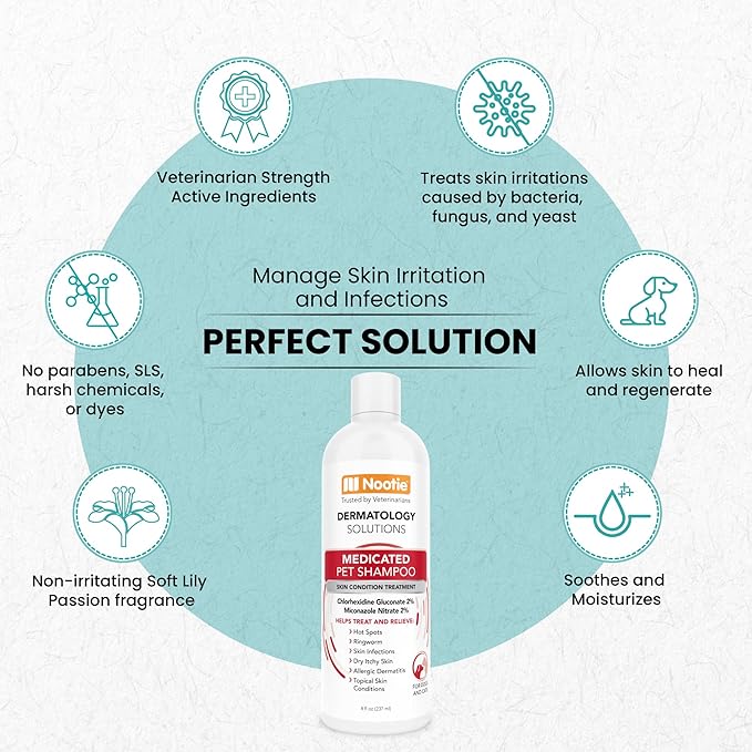 Nootie Medicated Pet Shampoo, Chlorhexidine Dog Shampoo for Itch Relief, Sold in over 5,000 Vet Clinics & Pet Stores Worldwide- 16oz