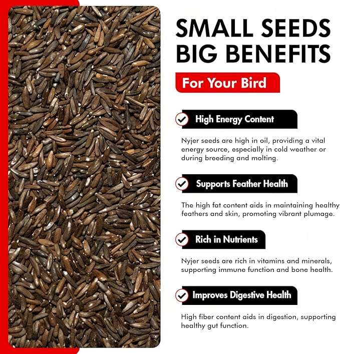 - Easy to Store, Easy to Use: The bag is designed for quick resealing and safe storage in dry spaces. This feature makes the Nyjer bird seed a perfect top-quality nutrition choice, whether you need daily or weekly feeding.