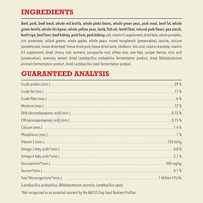 - High protein dog food recipe features 60 percent* high-quality animal ingredients and 40 percent** wholesome fruits, vegetables and nutrients and fiber to help support digestive health
