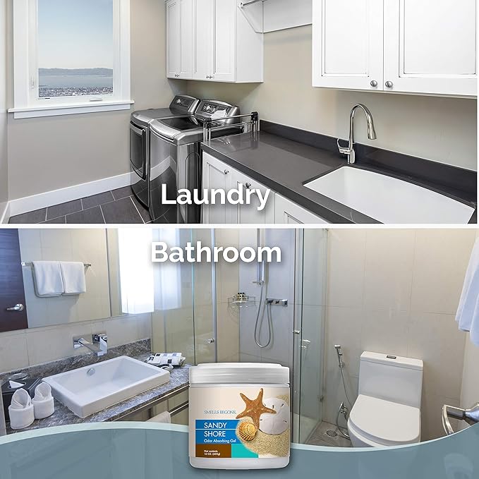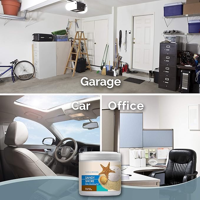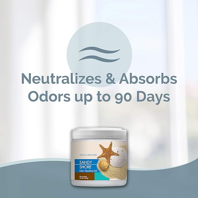 SMELLS BEGONE Air Freshener Odor Absorber Gel - 15 oz, Pack of 2 - Absorbs and Eliminates Odor in Pet Areas, Bathrooms, Cars, & Boats - Made with Essential Oils - Sandy Shore Scent