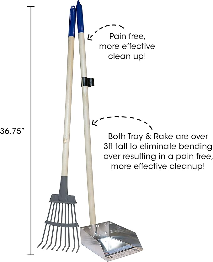 - The Spotty metal outdoor/kennel tray & rake from Royal pet is a lightweight aluminum scoop set that's perfect for cleaning up yards or kennels