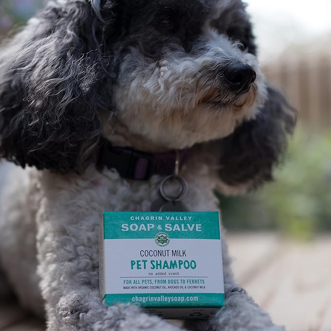 Chagrin Valley Soap & Salve Certified Organic Dog Shampoo and Conditioner – Dog Shampoo Itchy Skin Relief and Puppy Essentials - Natural Handmade Coconut Milk, 3.8 oz Bar
