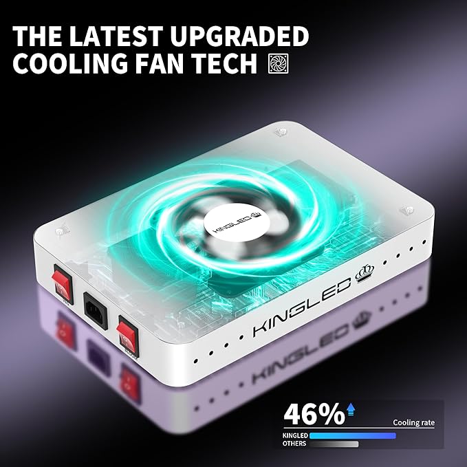 - Efficient Heat Dissipation: The aluminum heat sink and metal construction ensure excellent heat dissipation, keeping the temperature within optimal levels (50°f to 60°f); This cooling system prevents overheating, allowing the light to work efficiently without harming plants; Having the high-speed mute fans, the light remains quiet and stable, increasing its lifespan
