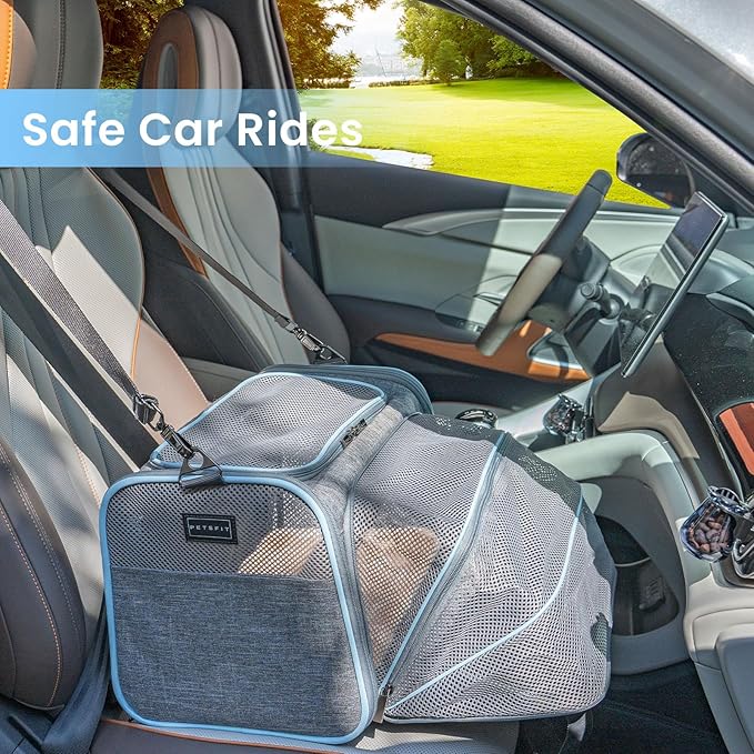- 【Airline Approved】This petsfit pet carrier for cat in S & M size meets most airline size regulations and fits easily under the airplane seat, including those of American Airlines, ensuring hassle-free travel. For the L size, please check the Airlines’ specific size standards. (Note: The expandable cat carrier has two detachable fiber rods on each side of the top. If the height exceeds the seat limit, simply remove the rods.)