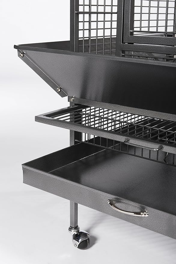 - Heavy-duty push button door lock plus wind bell lock to keep your bird secure