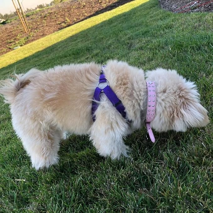 - [Cute ID Tag for DIY] - Each harness is equipped with a metal ID tag, and the front is a cute paw pattern, while on the back, you can engrave whatever you want, such as the dog's name and so on. It does not corrode as easily as wooden labels and is durable. You can also remove it when washing the harness.