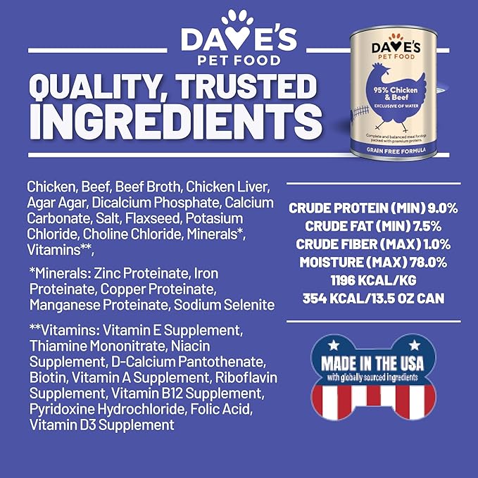 Dave's Pet Food Grain Free Wet Dog Food (95% Chicken & Beef), Made in USA, Limited Ingredients, Added Vitamins & Minerals, 12.5 oz Cans (12 Pack)