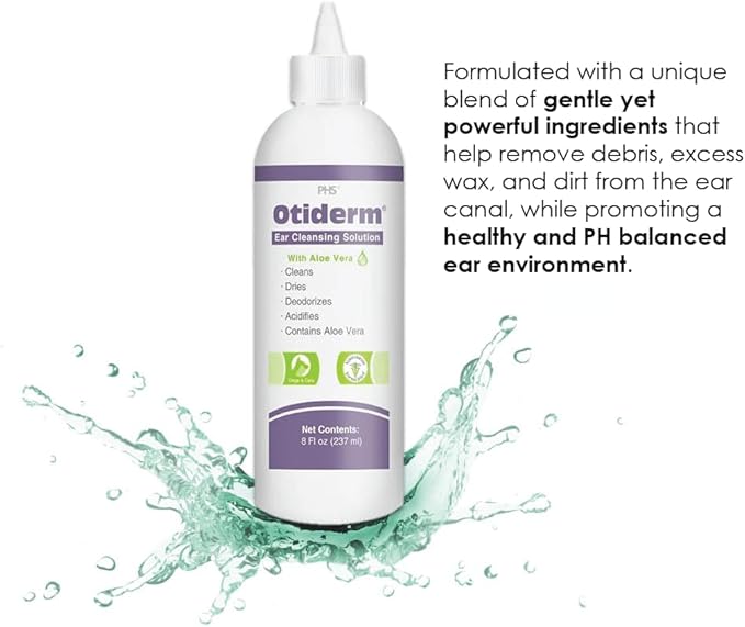 - Gentle Cleansing for Ear Health: Otiderm Ear Cleansing Solution with Aloe Vera for Dogs & Cats offers a gentle yet effective cleansing solution for your furry companions' ears. Say goodbye to discomfort caused by built-up debris and wax, as this solution ensures their ears stay clean and healthy.