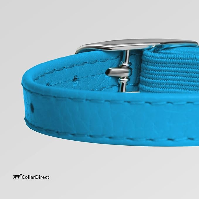 CollarDirect Leather Cat Collar, Kitten Collar with Removable Bell Black Blue Red Orange Lime Green (6-7 Inch, Light Blue)
