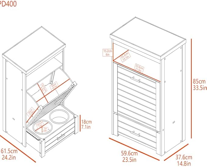 - Feeding drawer height is 7.7" from the floor