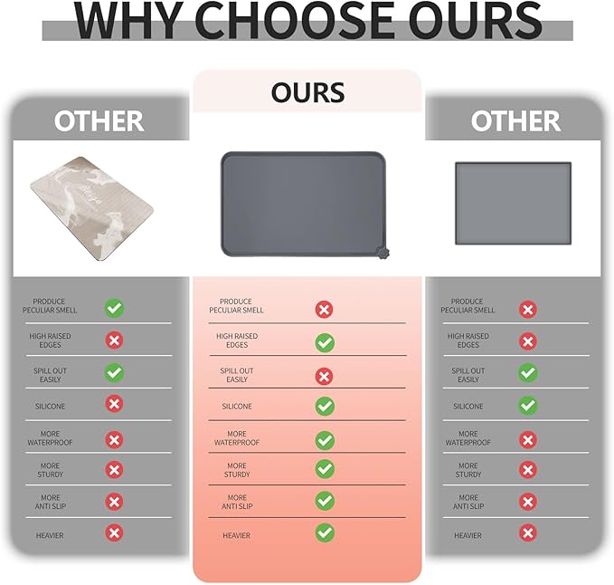 - Anti-slip design: our non-slip pet feeding mat ensures stability for your pet's bowl, preventing any water stains or spills on the floor. Enjoy peace of mind when feeding your pet, knowing that their food stays in place