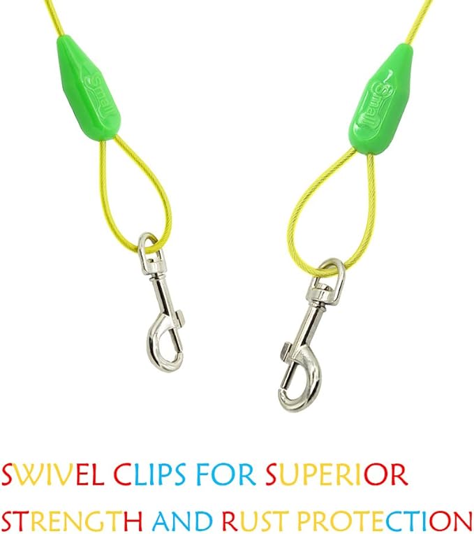 - Steel cable and swivel clips for superior strength and durability.