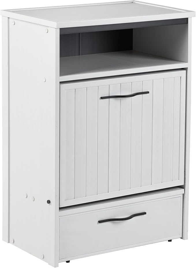 New Age Pet ECOFLEX Dog Food Pantry and Feeding Station - Antique White, Includes 2X 32oz Stainless Steel Bowls, Moisture Resistant, Easy Assembly, Holds 25 lbs of Dog Food