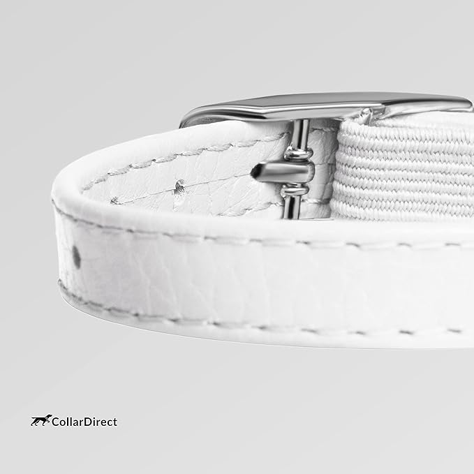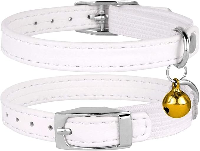 CollarDirect Leather Cat Collar, Cat Safety Collar with Elastic Strap, Kitten Collar with Bell Black Blue Red Orange Lime Green (8-11 Inch, White)