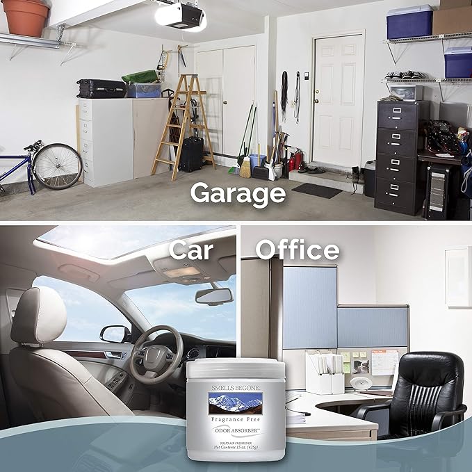SMELLS BEGONE Air Freshener Odor Absorber Gel - 15 oz, Pack of 2 - Absorbs and Eliminates Odor in Pet Areas, Bathrooms, Cars, & Boats - Made with Essential Oils - Fragrance Free