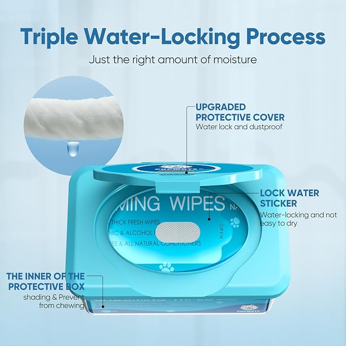 - CONVENIENT STORAGE AND DISTINCTIVE BOX DESIGN: The PUPMATE experience is about convenience, and our pet wipes exemplify this principle. Encased in a moisture-sealed box that shields them from dust and light, they're primed for use at a moment's notice. Be it your adventures outdoors or cozy moments at home, our dog wet wipes take on the role of unwavering protectors, an indispensable resource for your pet's joy