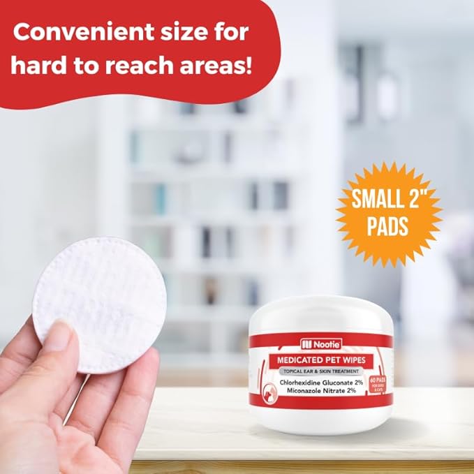 Nootie Medicated Dog Wipes - Antifungal Wipes - Antibacterial Wipes - Antimicrobial Wipes for Dogs 2% Chlorhexidine Wipes with 2% Micronazole for Best Results with Cats and Dogs Problems 60 pads - USA, White