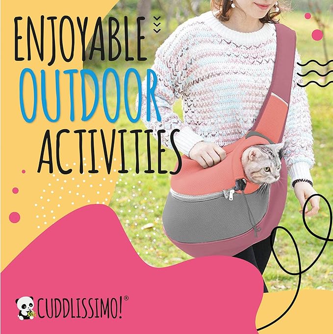 - ๐ถ PERFECT FOR SMALL PETS - Cuddlissimo! pet sling carrier is designed for small and teacup dogs or cats, up to 6 pounds in weight. This dog sling has a padded bottom, and the neck opening is fully adjustable.