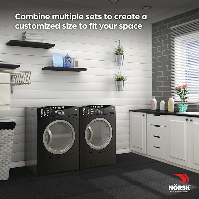 Norsk Foam Floor Gym Mats with Interlocking Tiles, .47" Thick, 24"x24", 24-Pack, 96 Square Feet, Diamond Plate Design, Black