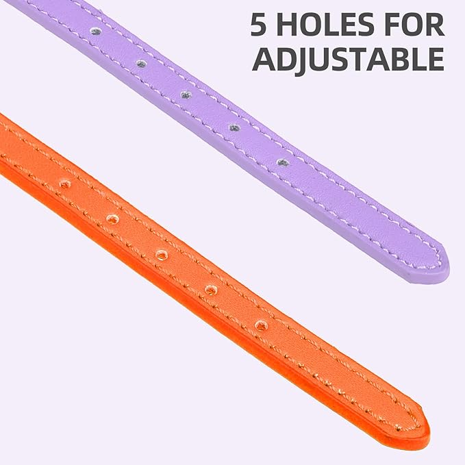 PUPTECK 2 PCS Soft Genuine Leather Cat Kitten Collar with Bells Adjustable for Girl Boy Cats Puppy - Orange, Purple