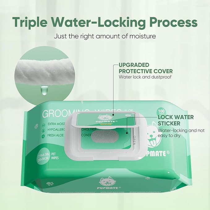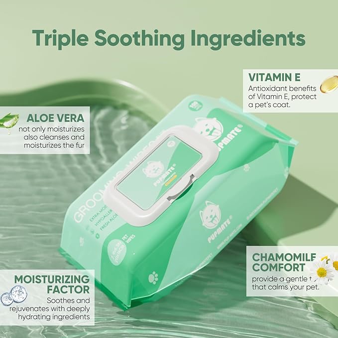 - DELICATE AND EFFICIENT CLEANSING: At PUPMATE, These grooming wipes for dogs & cats, and puppies wipes go beyond cleaning – they embody our commitment to creating a happier, healthier life for pets. Whether it's ridding them of dirt, mud, or a weird smell, our pet wipes work diligently to cleanse their butt, eyes, ears, and paws, ensuring that their four-legged friend feels consistently clean and delightfully refreshed