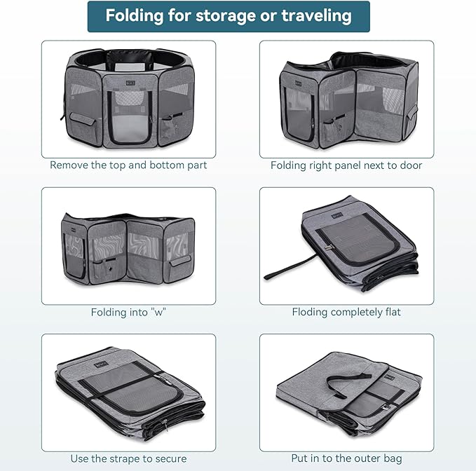 - Various Settings: Ideal for Indoor, puppy training, outdoor gatherings, camping, vet visits, pet-friendly events, home renovations, and travel stops. This playpen ensures a secure and comfortable space for pets, keeping them safe in any situation