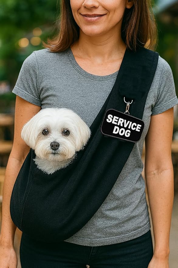 Small Service Dog Sling Carrier with ID Tag | EZ-Sling for Small Dogs | Includes Five Service Dog Law Handout Cards| Comfortable Alternative to Conventional pet Carriers