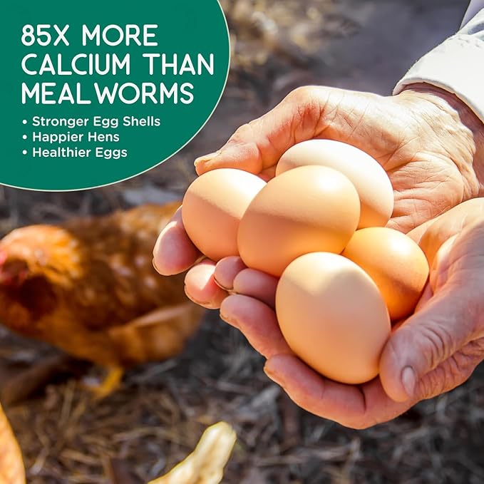 - 85x More Calcium Than Mealworms: These high-calcium grubs support stronger eggshells and healthier feather production in laying hens while promoting optimal energy levels in poultry and backyard birds