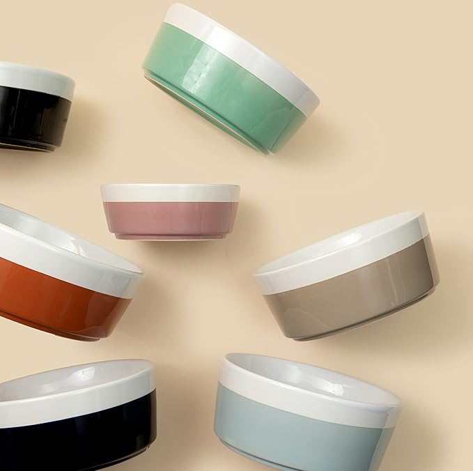 Waggo Dipper Ceramic Dog Bowl for Small and Large Breeds - Heavyweight and Durable Pet Food and Water Dish Crock, Dishwasher Safe, Modern (Black, Medium)