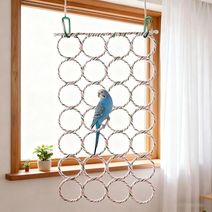 Bird Rat Climbing Rope Net Bird Swing, Parrot Cage Toys,Small Animal Activity Toy for Gerbil,Swing Hanging Play with Mirror for Macaw African Greys Parakeet Cockatoo Lovebirds (Bird Perch)